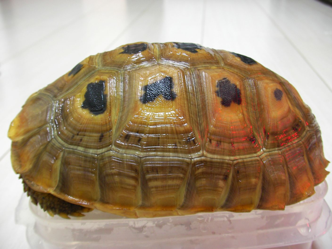 1週間ほど前に水亀の餌を買いに近所のペットショップに行った際、ベビーサイズのホシガメが数匹いまして、その中にとっても個性的な一匹がいたのです。