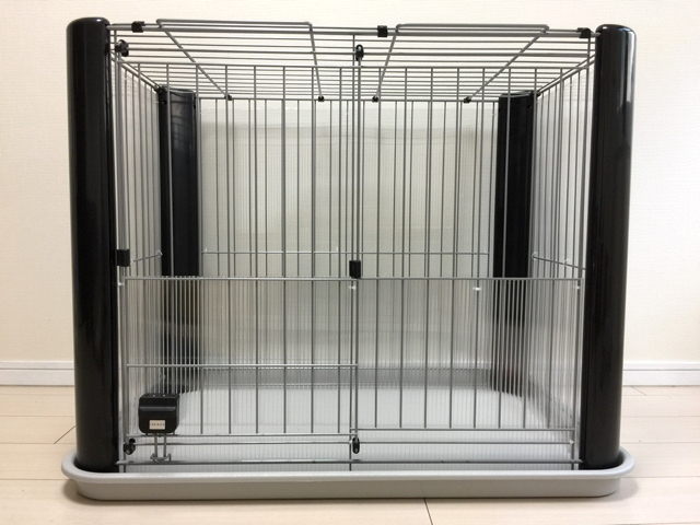 そして二つ目は、市販の犬用サークルにポリカーボネートで手を加えたお手軽ケージ
