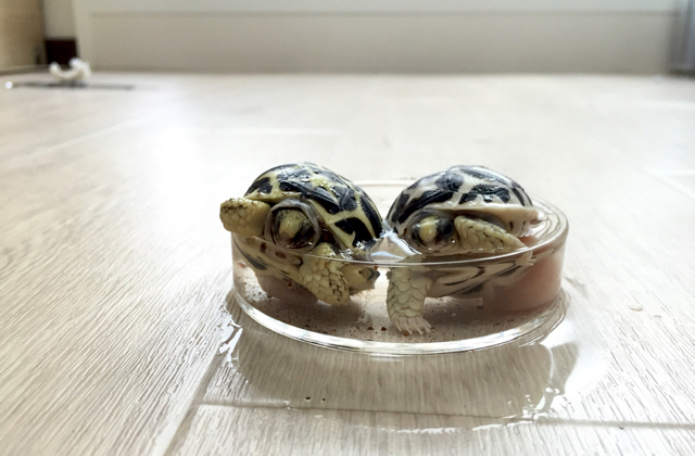 インドホシガメの1stクラッチ(6月末に産卵)が、ここ数日で続々と孵化しています。
