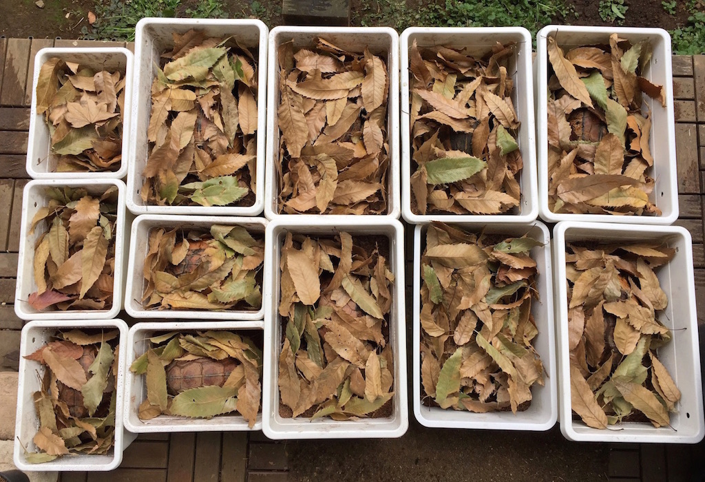 寒くなってきましたので、お庭のアジアンチームを冬眠ボックスへ移しました。