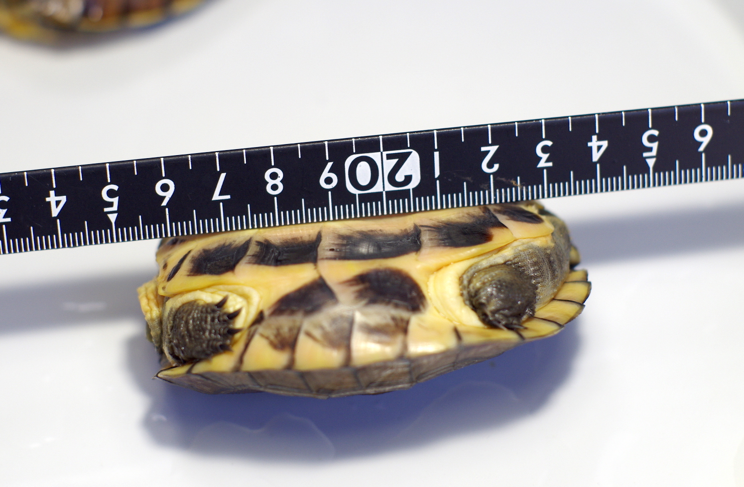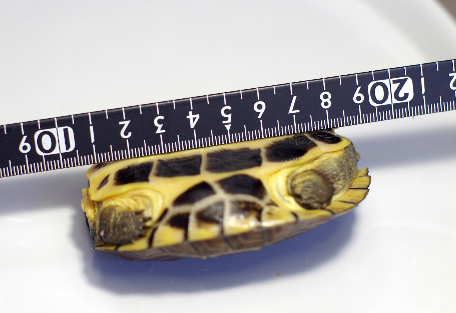 とはいえ、ヤエヤマのオスは甲長10cm程度でも尻尾が明らかに太いので、ウチのは両方ともメスなのか・・・。